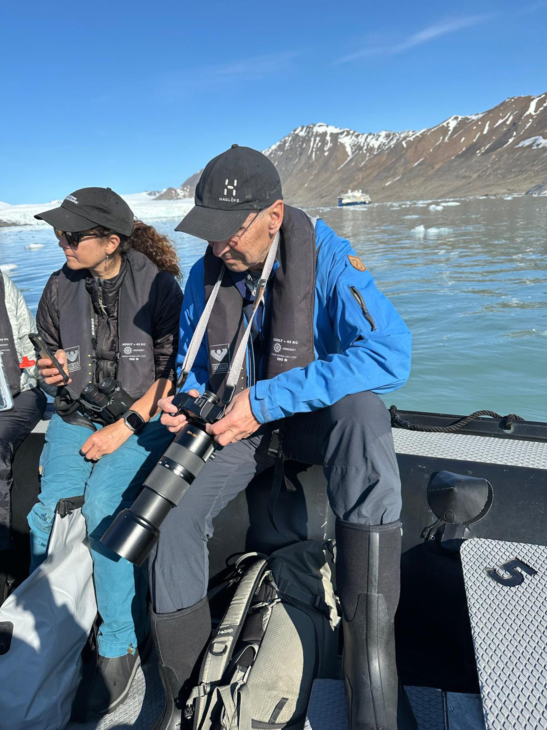 Resan till Svalbard inleds i slutet av juni 2025. Det blir ett äventyr jag länge drömt om men som alltid fått stå tillbaka för annat. Nu förverkligas drömmen tillsammans med vännen och vetenskapsjournalisten Peter Hanneberg som samarbetar med konstellationen National Geographic och Lindblad Expeditions. I deras expeditionskoncept är seriösa naturstudier, miljöanalyser, utbildning och naturskydd viktiga delar, till vilka de samlar medel i sin havsmiljöfond LEX-NG Fund. På sjutton år har fonden hittills investerat 250 miljoner kronor i sådana miljövetenskapliga projekt på de oceaner de själva färdas över. Peter Hanneberg, som är grundare av Svenska Ekoturismföreningen samt även är ledamot i WWF:s Förtroenderåd och skriver i WWF Magasin och Dagens Nyheter, har i många år följt och dokumenterat NatGeo-LEX:s arbete, som i grunden alltså finansieras av expeditionsturismen. Nu har Peter och jag fått den otroliga förmånen att kunna resa tillsammans för att följa studierna och bistå under fjorton dygn genom ödsliga spetsbergska och grönländska farvatten. I Longyearbyen, Svalbards pyttelilla ”huvudstad” vid världens utkant, går vi ombord.