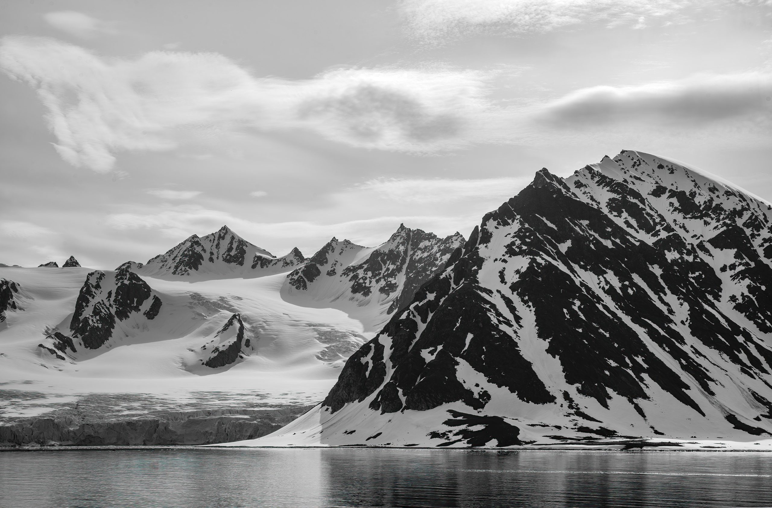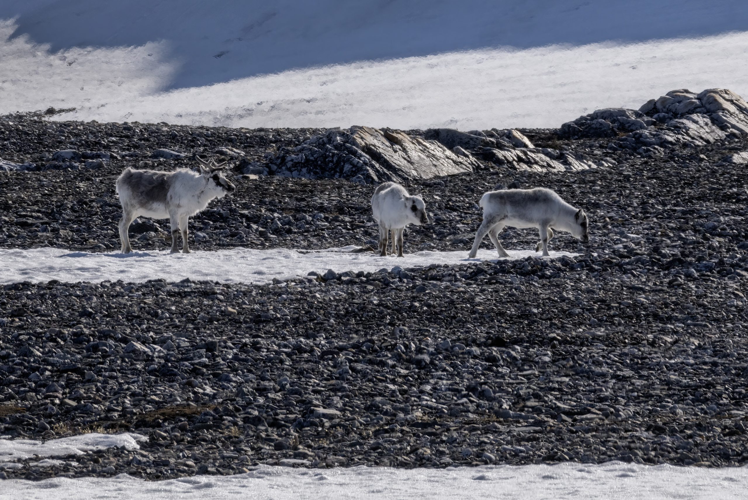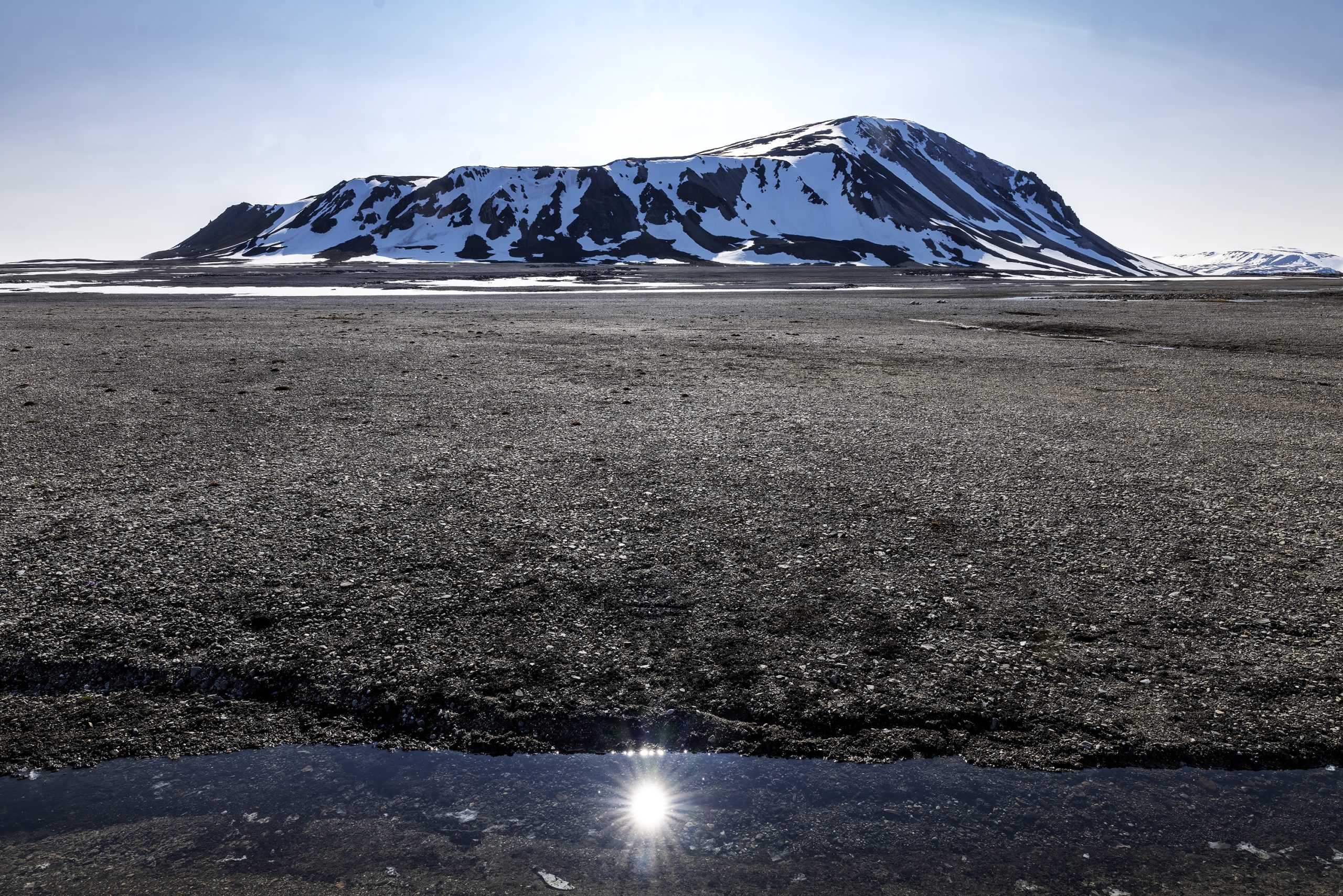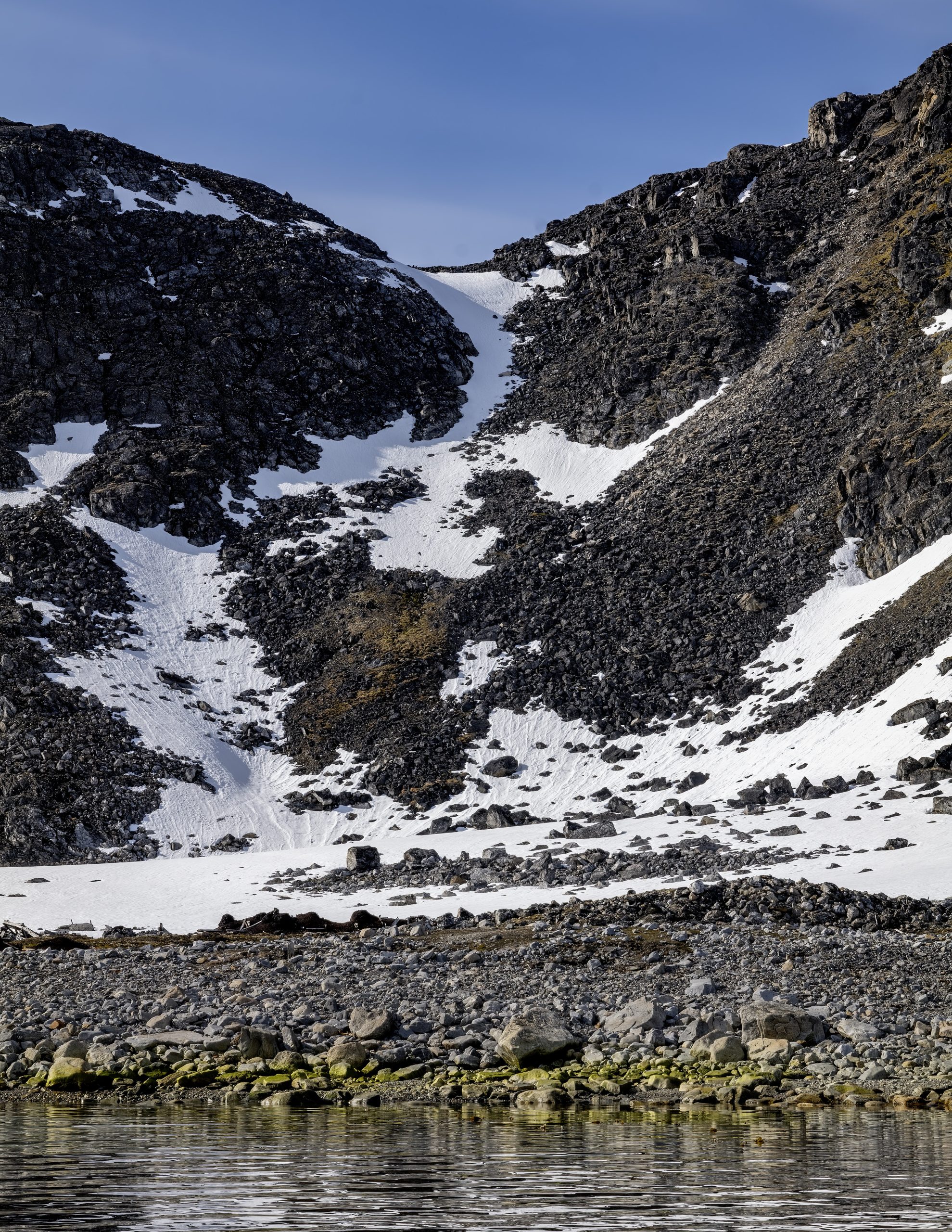 Våra guider berättar att svenskarna valde Sorgefjorden för sin övervintring därför att packisen på den tiden hindrade dem att nå andra tänkbara platser. Expeditionens resultat blev till slut banbrytande. Världen är inte alls rund som en boll, kunde man konstatera. Deras gradmätningar bekräftade att jordklotet faktiskt planar ut mot polerna på grund av rotationen. Än i dag står ett av expeditionens hus kvar i förfallet skick, men fortfarande med historisk värdighet. Huvudbyggnaden har däremot fallit ihop till en brädhög. När vi går därifrån och ut på den låglänta tundran får vi se några kompakta svalbardsrenar på nära håll. Det är världens minsta underart av vildrenen, och de är väl anpassade till denna ogästvänliga miljö. I bakgrunden reser sig Heclahuken som är ett fjäll på drygt 400 meter över havet. Inför den synen slår det mig att Svalbards toppar ofta är relativt låga och milt formgivna. Många är kraftigt stukade av istidernas nötningar. På andra håll bryts dock silhuetten av taggiga berg, som i Andrée Land, väster om Wijdefjorden. Högst av alla på ögruppen är Newtontoppen 1712 meter över havet.