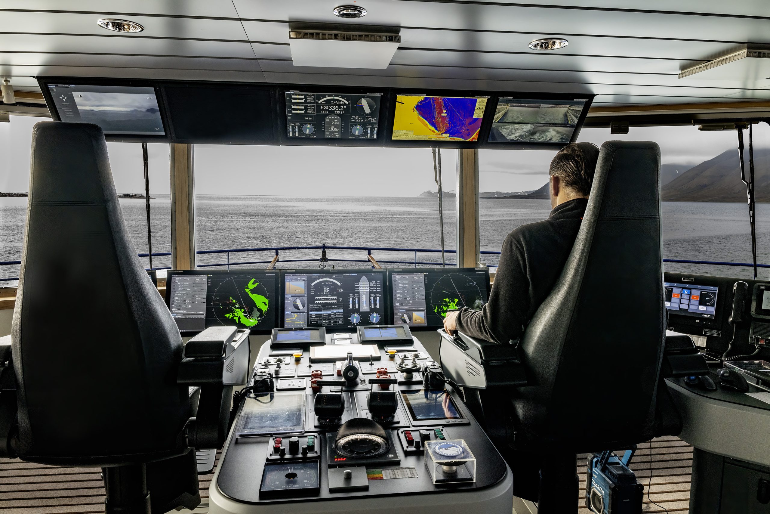 Styrbryggan på fartyget ser ut som en flygcockpit.