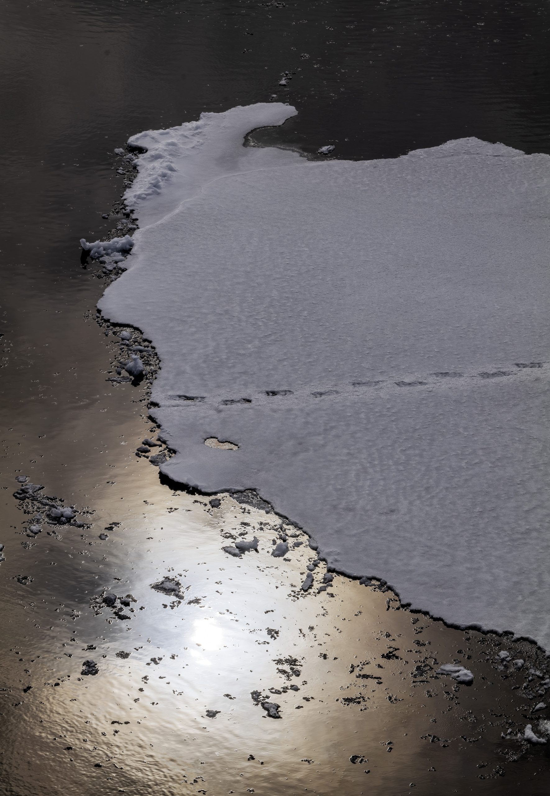 Här har en annan isbjörn plumsat i vattnet. Tassavtrycken kan vara 30 cm långa.